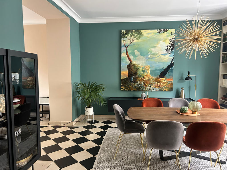 Farbe in Innenräumen ist so wichtig, weil sie unsere Emotionen und unser Verhalten beeinflusst. Nach einer längeren Phase von „weiß und clean“, kehrt langsam das Bewusstsein und auch der Mut für Farbe zurück, und das aus gutem Grund. Denn ich erlebe jeden Tag, wie die richtige Wandfarbe meine Kunden glücklich macht.